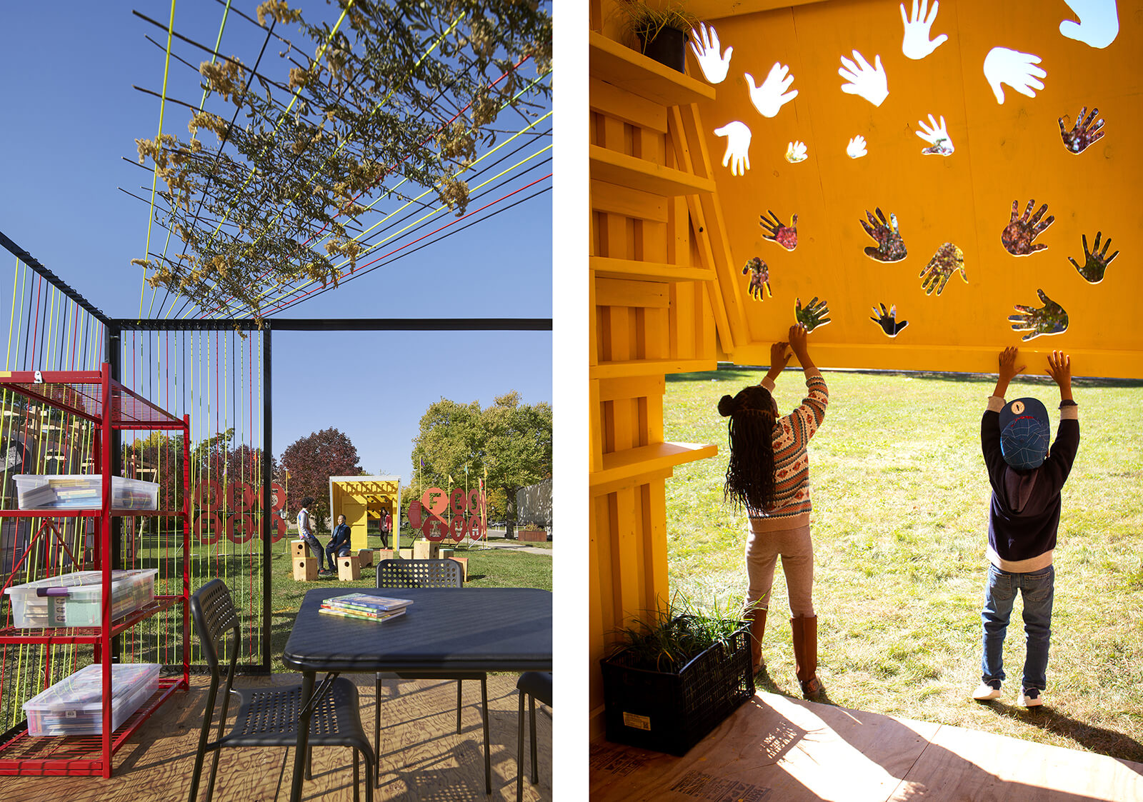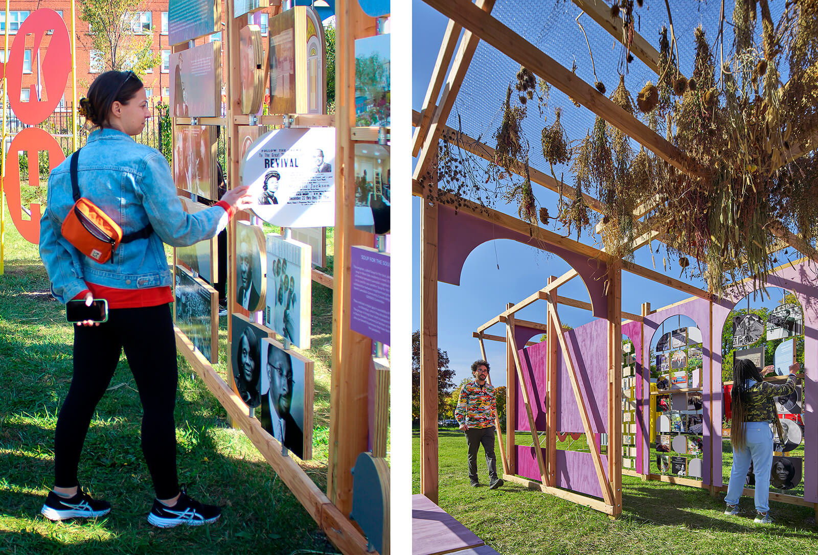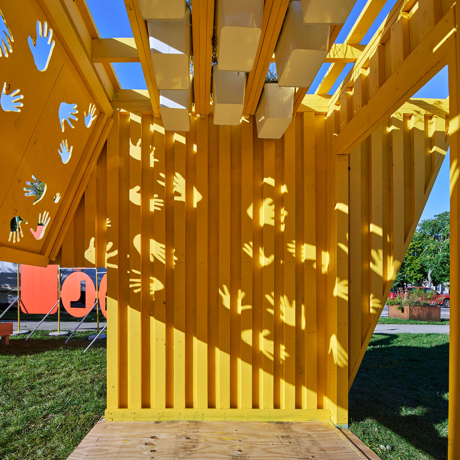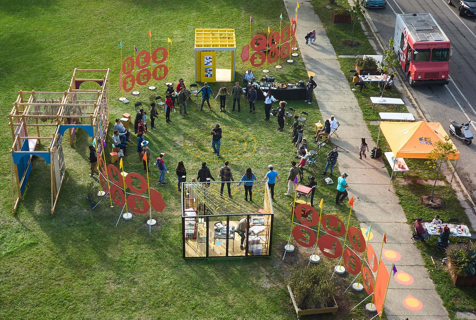 The Chicago Sukkah Design Festival pairs community organizations in Chicago’s North Lawndale neighborhood with diverse architectural designers to design and construct sukkahs, small outdoor pavilions built for the Jewish holiday of Sukkot. Working collaboratively, teams explore design literacy, social justice, and neighborhood futuring. The Festival celebrates cultural heritage and amplifies solidarity among the Jewish community who lived there historically, the predominantly Black community that resides there today, and the broader Chicago community. It engages the neighborhood's multicultural history, builds interfaith partnerships, and elevates the role of design in building an anti-racist city. During the week-long Festival, the landscape of unique sukkah structures is activated with cross-cultural public programming, co-organized with the Lawndale Pop-Up Spot, bringing together intersectional pairings of neighborhood groups. After the Festival, each sukkah is relocated and re-installed at the facilities of the community organizations that co-designed them, as vibrant new permanent spaces; for example, micro-museums, neighborhood farmstands, and book nooks.