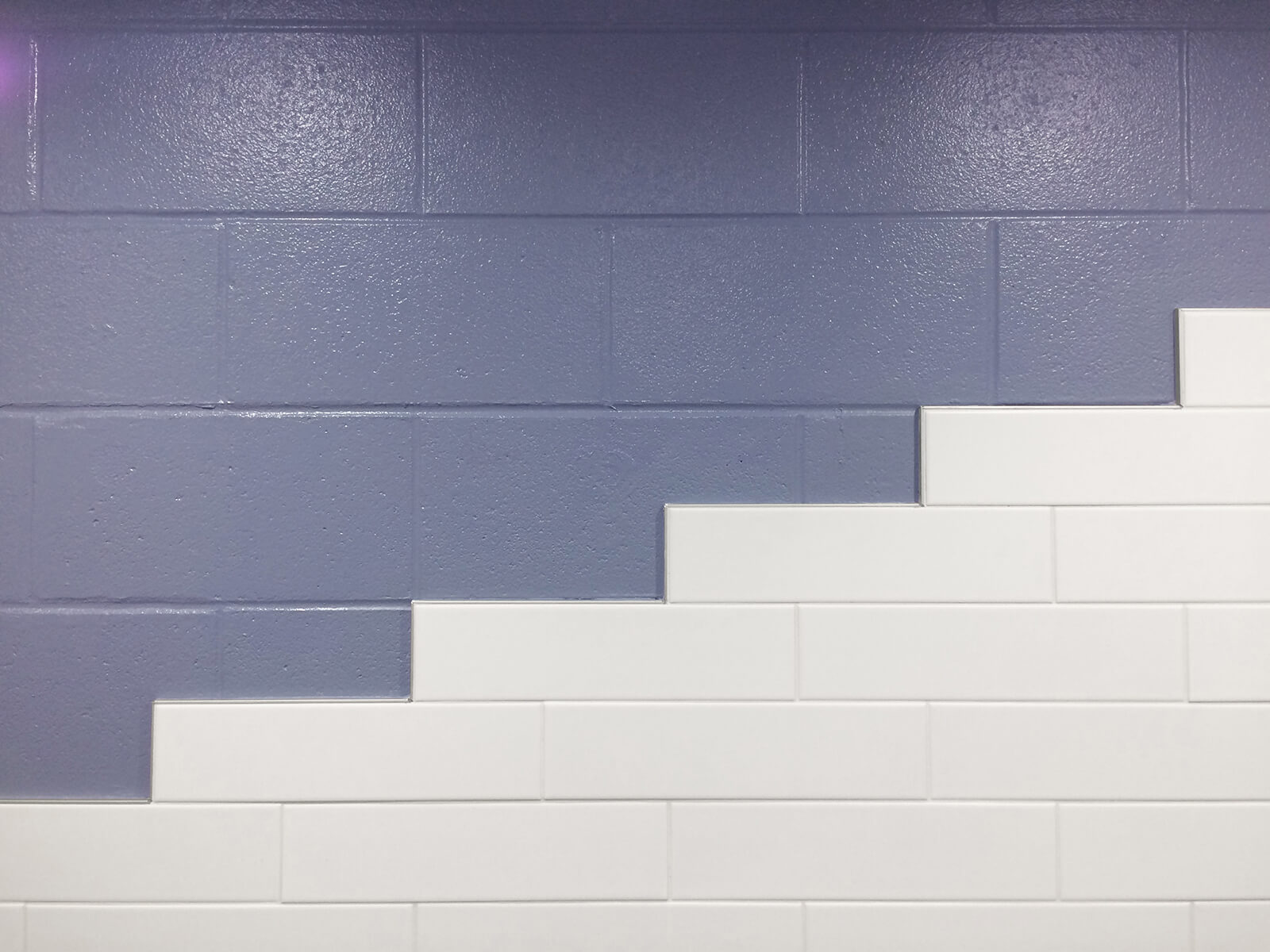 This interior design for a synagogue's restrooms creates cascading patterns of ceramic wall tile to generate visual intrigue and dynamic sight lines in an otherwise constrained footprint of an existing building. Embracing the modest budget as a design opportunity, the graphic strategy for the tile produces unexpected alignments and novel reflections, while limiting overall material use. Saturated colors and clean lines transform a previously drab room into one full of light, patterns, and joy.